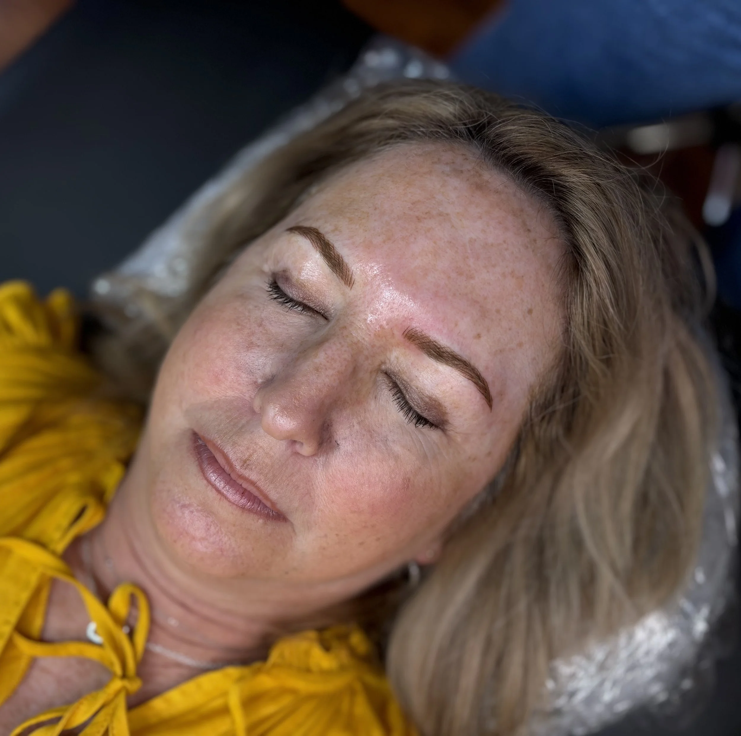 Always apply SPF on your brows when outdoors. Sun exposure can break down pigment, causing it to blur or fade more quickly.
